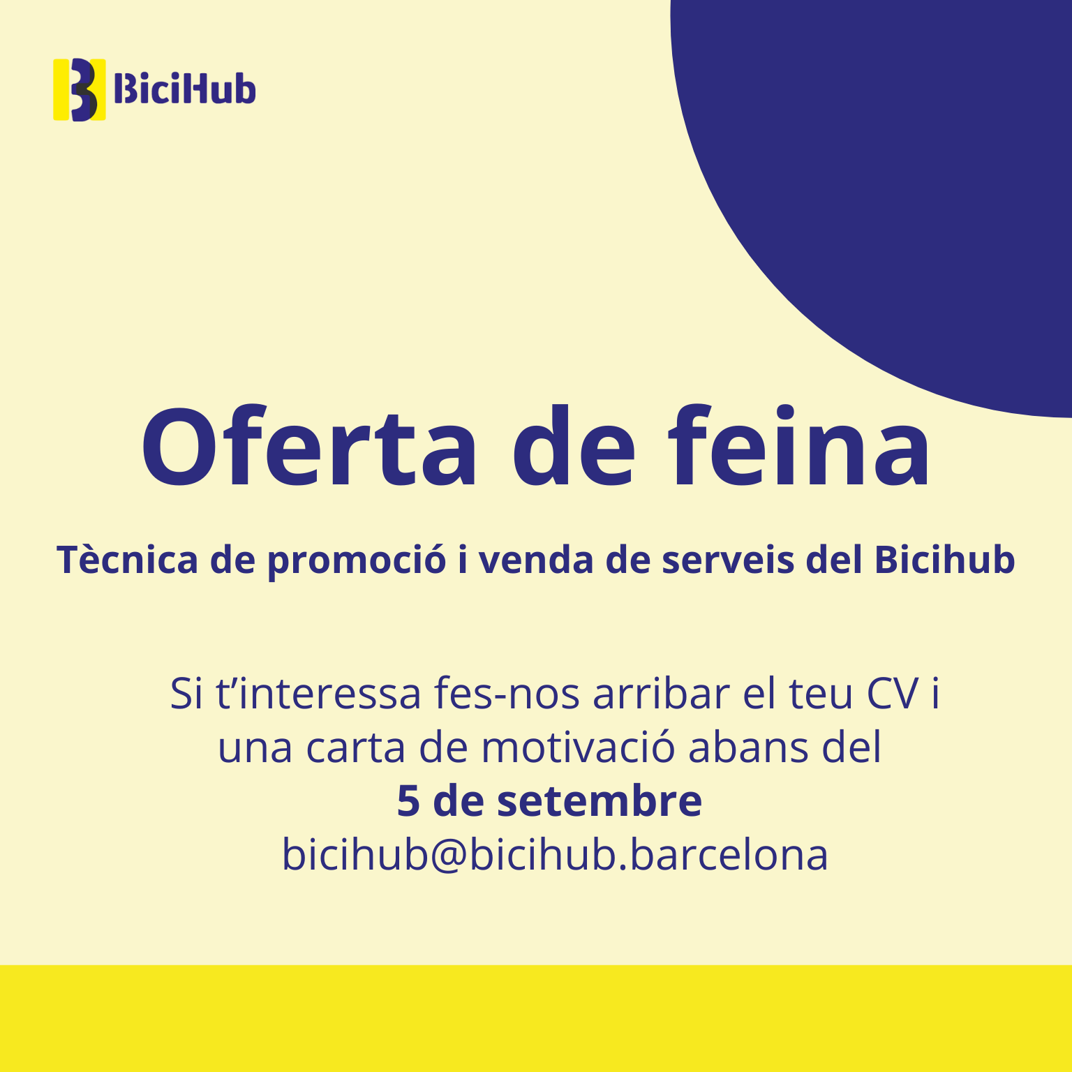 📩 Envia CV + carta de motivació a bicihub@bicihub.barcelona abans del 5 de setembre 2025